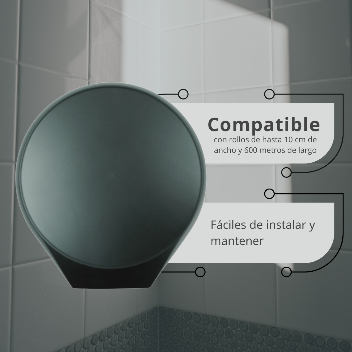 🧻 Compatible con rollos de hasta 10 cm de ancho y 600 metros de largo🎨 Diseño con acabado rugoso para prevenir rayaduras👁️🗨️ Zona central lisa para facilitar la visibilidad del rollo