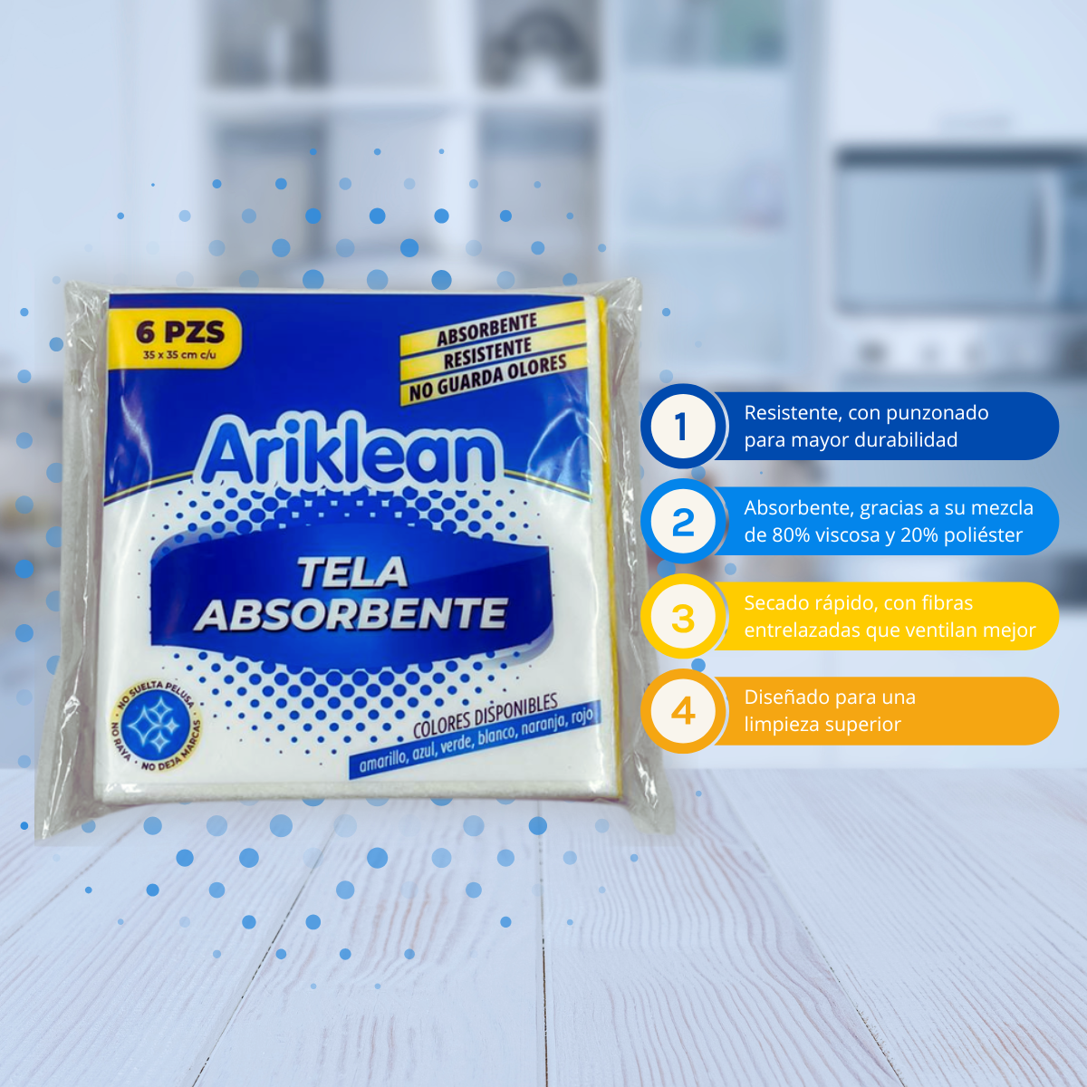 🧽 Absorbente 🛡️ Gran resistencia 🚫👃 No guarda olores ❌🧴 No deja residuos